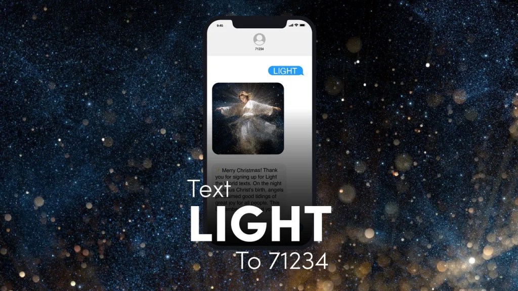 You can also text LIGHT to 71234 for inspiration and resources for how to serve like Jesus Christ did. Messages come twice a week during the month of December.